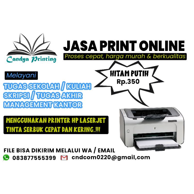 Soal performa printer monokrom ini memiliki kecepatan mencetak hingga 20 lembar A4 dan 21 letter per menit. Buku dilengkapi pita pembatas untuk menandai halaman yang sudah dibaca. Web Kalo foto copynya menggunakan printer epson L565 dgn tinta original hrg copy warna dan hrg copy hitam putih brp per lbrnya ya gan.