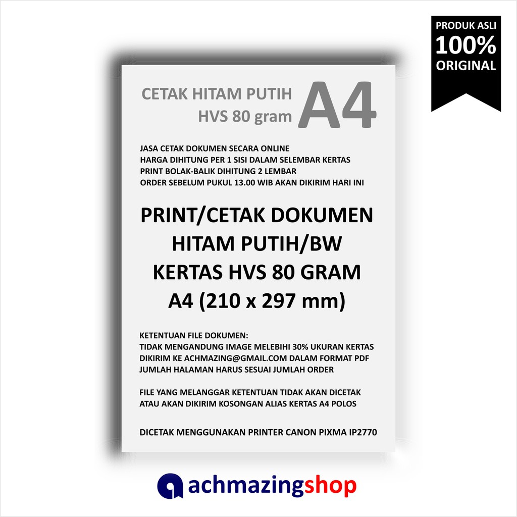 Jual Print Cetak Dokumen A4 Hitam Putih Kertas Hvs A4 80 Gram Shopee Indonesia